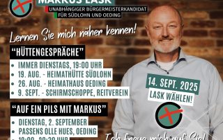 „Ich lade Sie ganz herzlich ein, mich kennenzulernen – kommen wir ins Gespräch über Südlohn, Oeding und gerne über meine Person. Dabei freue ich mich […]